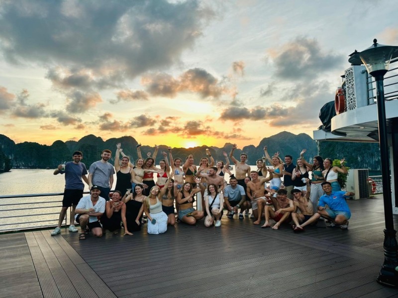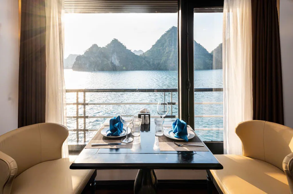 • 1-night 4–5★ cruise (La Pandora, Velar, Rosy, or equivalent) on Lan Ha Bay (2D1N). Clean, well-equipped rooms with 2 people/room (3 guests/room if odd number)