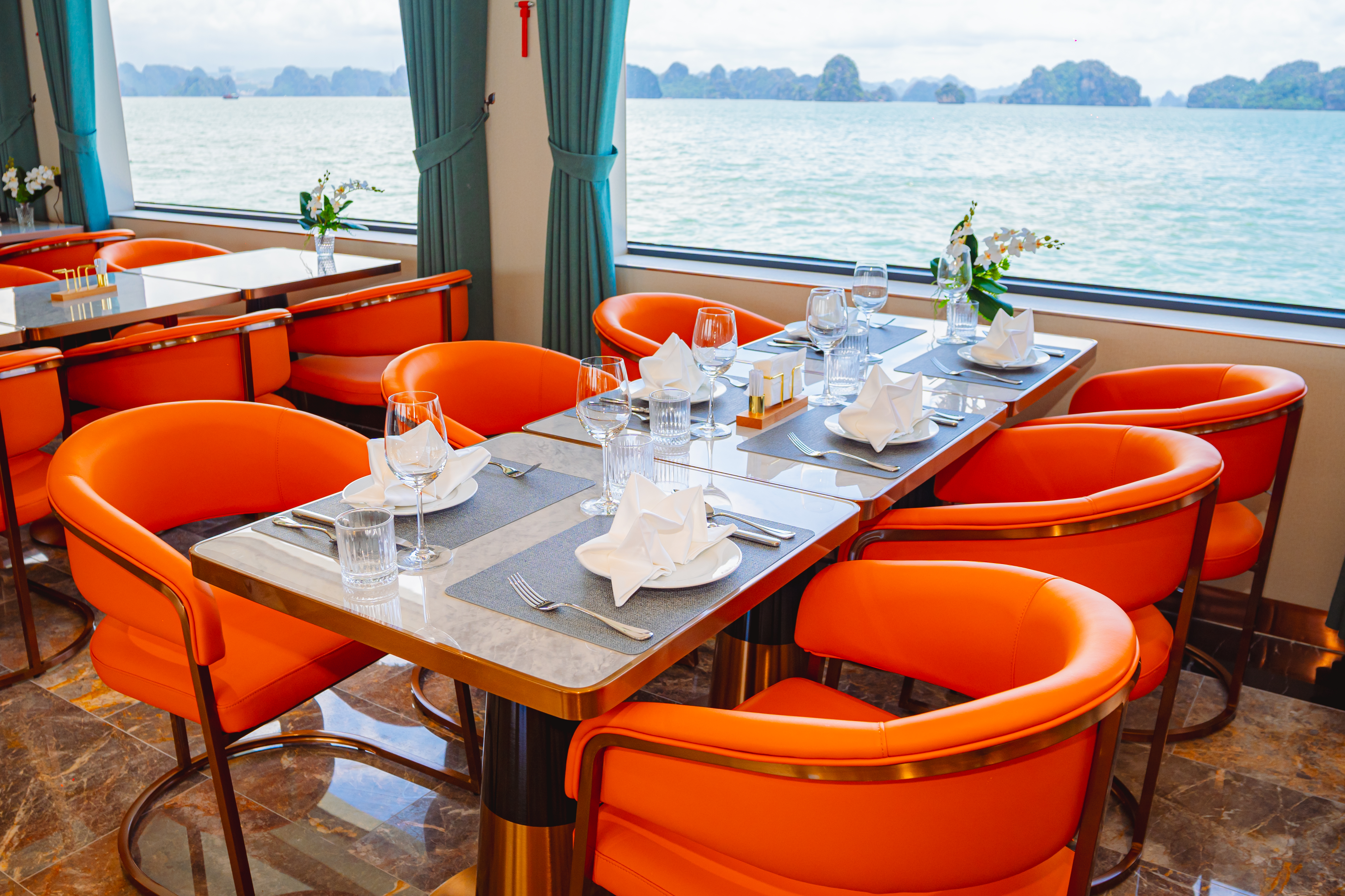 17h00 – 17h30: Cruising back to Tuan Chau harbor. There are a lot of time for enjoying sunset party with Red Wine, Tea, Cakes, sunbathing on upper deck with music and enjoying great fun of group touring fellows among world iconic natural scenery.