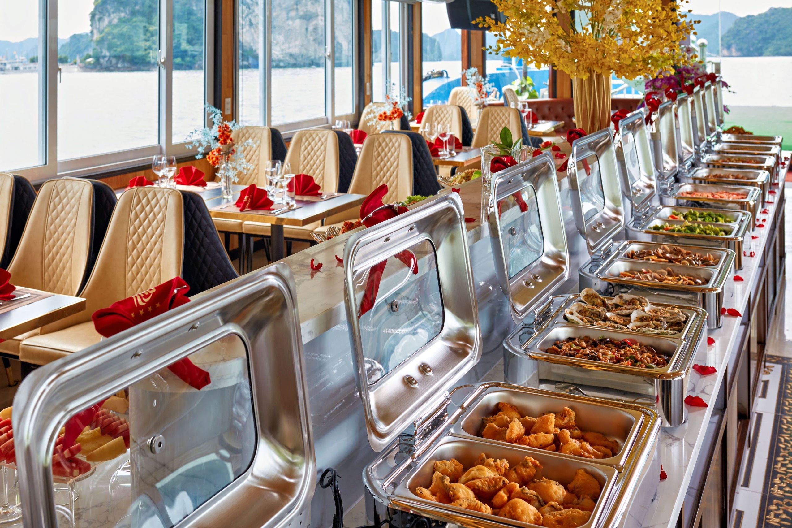 12h00: Arrive Tuan Chau Harbor. Welcome to Cozy Bay Premium Cruise. We will take you on 6 hour journey via 2 day-sleeper boat cruise route which renowned for its striking, passages uninhabited islets and outcrops have been given imaginative names by the locals, due to their perceived shapes while having Buffet lunch on boat.