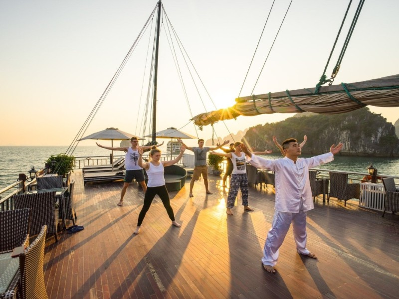 • 1-night 4–5★ cruise (La Pandora, Velar, Rosy, or equivalent) on Lan Ha Bay (2D1N) – clean, well-equipped rooms (2 guests/room or 3 guests/room if odd number)